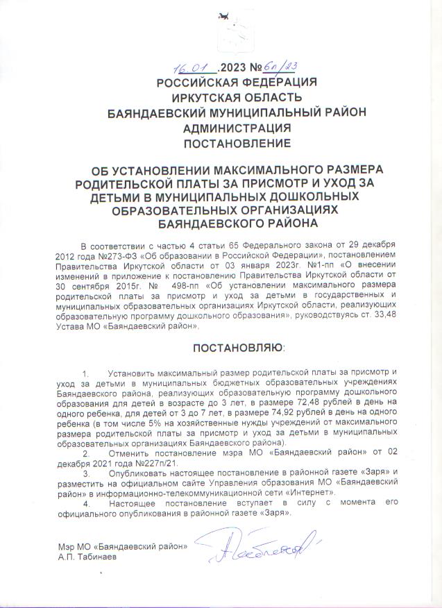Постановление о родительской плате